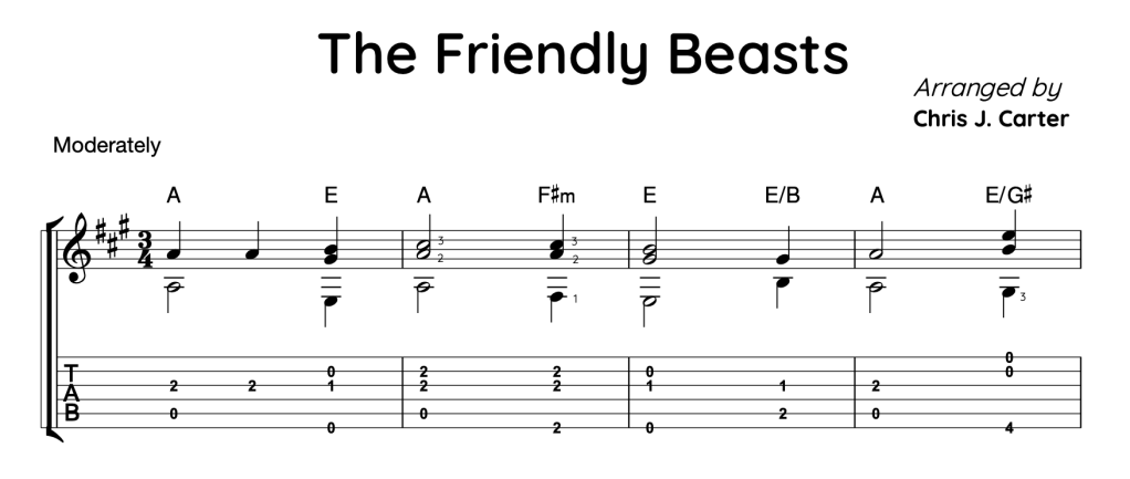 Hey guitar players! Add these beautiful and relatively easy fingerstyle arrangements to your Christmas repertoire this year: The Friendly Beasts, Jolly Old Saint Nicholas, The Boar’s Head Carol, Coventry Carol, I Heard The Bells on Chrismas Day, Good King Wenceslas, Patapan and Ding Dong Merrily on High. Play them at your performances or for family and friends! Sheet music includes standard notation, tabulature and fingerings.