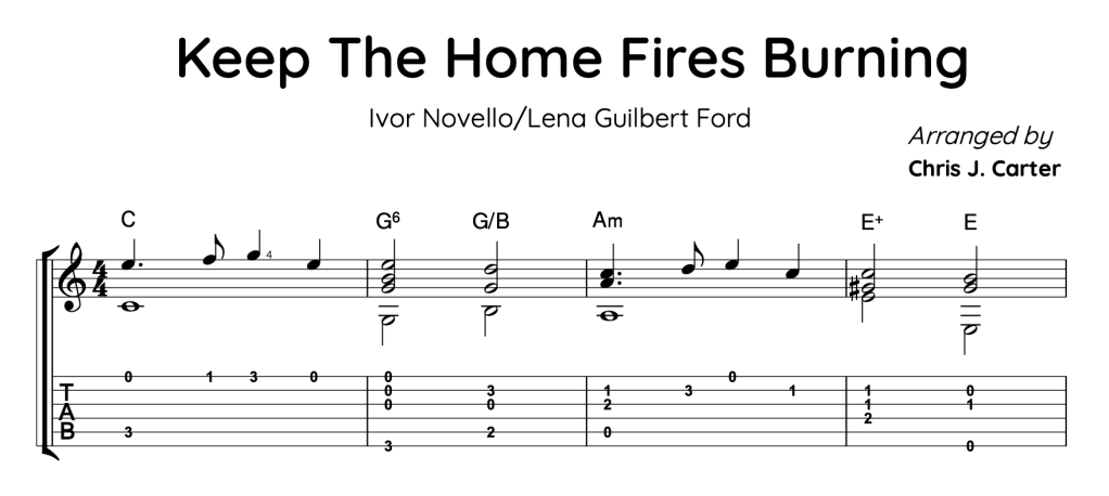 Below is a sheet music sample of “Keep The Home Fires Burning.”